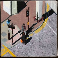 2022. Acrylic on canvas. 12.6cm x 12.6cm x 3.5cm including wood frame. Matt varnished surface. Inspired by the architecture and people of Croydon, south London.